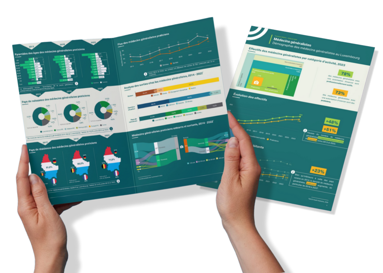 Les factsheets présentent un aperçu chiffré des professionnels de la santé au Luxembourg. Ces infographies s’inscrivent dans la continuité du récent rapport méthodologique: « Les professionnels de la santé au Luxembourg - Un modèle d’évaluation quantitative », publié par l’ObSanté.